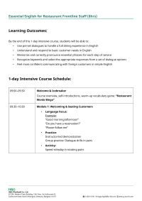 • พนักงานเริ่มพูดภาษาอังกฤษได้ทันที ผ่านการฝึกบทพูดที่ใช้จริง เช่น ทักทาย แนะนำเมนู รับออเดอร์ ดูแลลูกค้าในร้าน