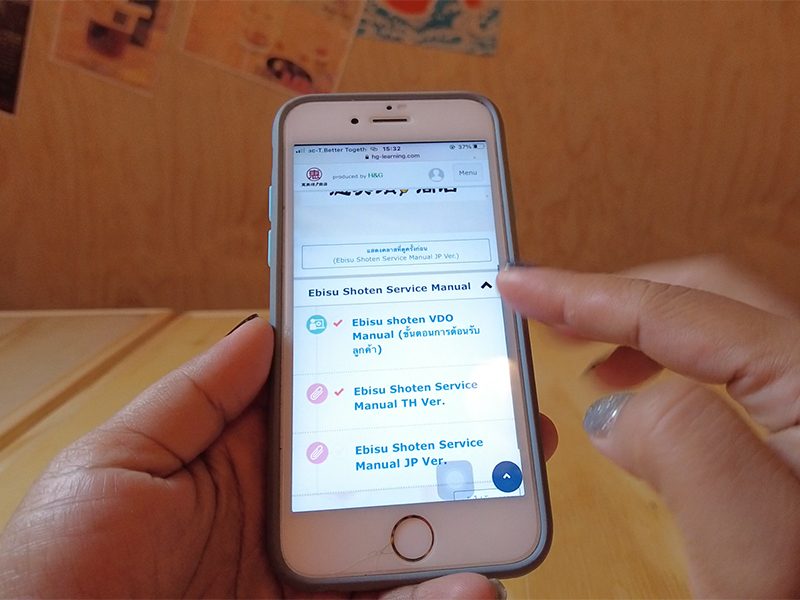 เราได้อัปโหลดข้อมูลไว้ใน H&G Learning และสอนงานตามคู่มือ ทั้งแบบ 1 on 1 และ Self-Learning นอกจากจะช่วยให้สอนงานได้ง่ายขึ้นแล้ว เรายังสามารถอัปเดตข้อมูลให้ทันสมัยได้ตลอดเวลา